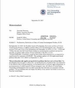 अमेरिकी सरकारद्धारा आप्रवासनमा कडाई गर्ने क्रममा सीपयुक्त कामदारका लागि एच १बी भिसा आवेदन शुल्कमा भारी वृद्धि गरेको छ । अमेरिकी राष्ट्रपति डोनाल्ड ट्रम्पले जारी गरेको नयाँ कार्यकारी आदेशअनुसार सेप्टेम्बर २१ देखि लागू हुने गरी नयाँ आवेदनका लागि शुल्क १ लाख डलर तोकिएको छ । यो शुल्क बृद्धिले बहुसख्यक सिटमा भारतीयहरुलाई असर पर्ने भन्दै भारत सरकारले यसबाट मानवीय संकट आउन सक्ने चेतावनी दिएको छ । अमेरिकाले जारी गर्ने कुल एच १बी भिसामध्ये करिब ७० प्रतिशत भारतीय कामदारले पाउँने भएकोले यो निर्णयको सबैभन्दा ठूलो असर भारतमाथि पर्ने निश्चित छ ।