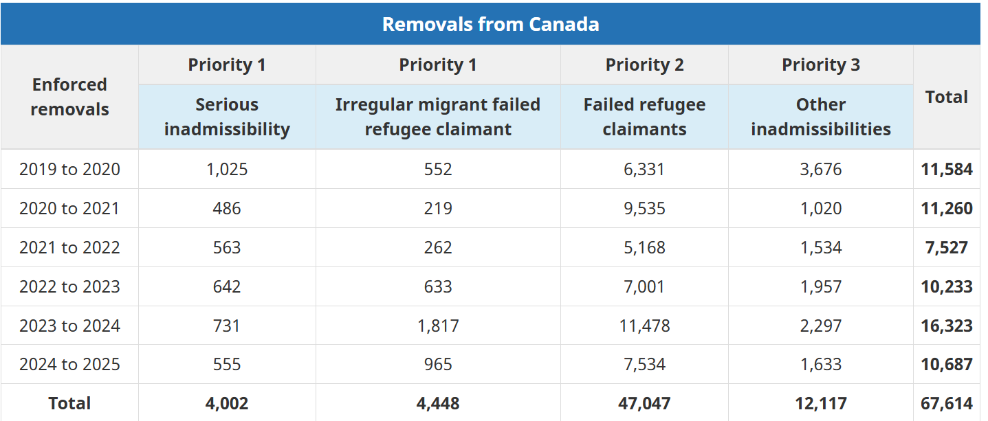 क्यानेडियन बोर्डर सर्भिस एजेन्सी सीबीएसएको पछिल्लो तथ्याङ्क अनुसार, सन् २०२५ को जुलाई २८ सम्म निष्कासित भारतीय नागरिकहरूको सङ्ख्या पहिले १ हजार ८९१ पुगिसकेको बताइएको छ । विगतका वर्षहरूमा भारतीयहरूको निष्कासन दर ह्वात्तै बढेको छ। सन् २०१९ मा यो सङ्ख्या केवल ६२५ थियो ।