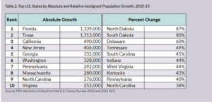 अमेरिकाको आप्रवासी जनसंख्या संख्याका हिसाबले ऐतिहासिक उच्च तहमा पुगेको छ । यद्यपि कुल जनसंख्यामा यसको अनुपात भने धेरै होईन । पछिल्लो दशकमा जन्मदर घट्दै जाँदा अमेरिकाको जनसंख्या वृद्धि सुस्त हुँदै आएको छ । यस अवस्थामा आप्रवासन अमेरिकी जनसंख्या वृद्धिको महत्वपूर्ण आधार बनेको छ। वास्तवमा, २०२२ देखि २०२३ सम्मको अवधिमा अमेरिकाको कुल जनसंख्या वृद्धि पूर्ण रूपमा आप्रवासनकै कारण भएको थियो, जुन तथ्यांक संकलन सन् १८५० देखि सुरु भएयता पहिलो पटक हो।