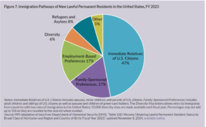 अमेरिकी जनगणना ब्यूरोको सबैभन्दा पछिल्लो अमेरिकन कम्युनिटी सर्वे २०२३ अनुसार, २०२३ सम्म संयुक्त राज्य अमेरिकामा ४ करोड ७८ लाख अर्थात ४७ दशमलव ८ मिलियन आप्रवासीहरू बसोबास गरिरहेका थिए। तीमध्ये करिब तीन चौथाइ आप्रवासीहरू कानुनी रूपमा रहेको देखाउँछ । जसले नागरिकता प्राप्त गरिसकेका स्थायी बसोबास अनुमति प्राप्त व्यक्ति हुन भने ग्रीन कार्ड धारक अस्थायी भिसा धारकमा पर्दछ ।